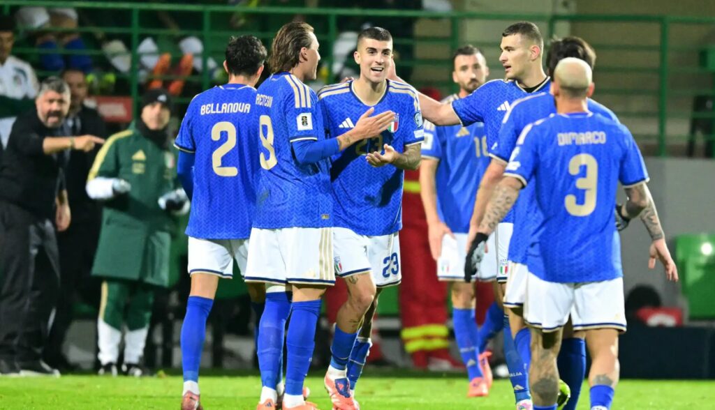Dopo il poker della Norvegia con l’Estonia, l’Italia batte 2-0 la Moldova nella settima giornata del “Gruppo I” delle qualificazioni ai Mondiali 2026, ma l’incolmabile differenza reti di Haaland e compagni (+29) ufficializza praticamente i playoff per gli azzurri. Allo Zimbru Stadium di Chisinau nel primo tempo gli uomini di Gattuso fanno la partita, ma manovrano con poca qualità, precisione e velocità e sbattono contro le parate di Cojuhar. Stesso film nella ripresa fino al finale quando Mancini (88′) sblocca la gara su assist di Dimarco e Pio Esposito (93′) raddoppia i conti su cross di Politano. Domenica gli azzurri affronteranno la Norvegia nell’ultima partita del girone.