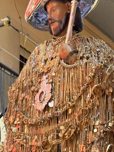 «Da noi il sacro è un cinto dedicato alla Madonna in processione, un atto di comunione in cui il popolo trova la forza di “saltare il fuoco” per compiere il suo incontro con il sacro». Ultimi giorni per visitare la mostra immersiva “Basilicata sacra: un altro cielo” ospitata a Roma, nella Sala Vasari del palazzo della Cancelleria (3 – 24 settembre 2025.Realizzata in occasione del Giubileo 2025, Basilicata sacra è un racconto immersivo e multisensoriale dei riti, dei simboli e delle espressioni di fede che animano le comunità lucane, mettendo in luce la dimensione collettiva e partecipativa della religiosità popolare. Attraverso sezioni tematiche, la mostra offre una lettura trasversale e diacronica del fenomeno, alternando manufatti storici di grande valore devozionale a installazioni multimediali e ambienti immersivi capaci di restituire la forza evocativa dei gesti, delle voci, dei suoni e delle immagini che scandiscono la ritualità lucana. La mostra è promossa dalla Regione Basilicata grazie alla sottoscrizione di un protocollo d’intesa con la Conferenza Episcopale della Basilicata (CEB). Tra gli elementi in esposizione, simboli significativi provenienti da tutte le diocesi della Basilicata: oggetti processionali, reliquie, paramenti sacri, elementi lignei e cartapesta, oltre a una sezione dedicata alla Via Crucis reinterpretata in chiave contemporanea. Una viaggio intimo nei luoghi e nei momenti più intensi della pietà popolare lucana, che documenta l’intreccio tra fede, territorio e identità culturale.