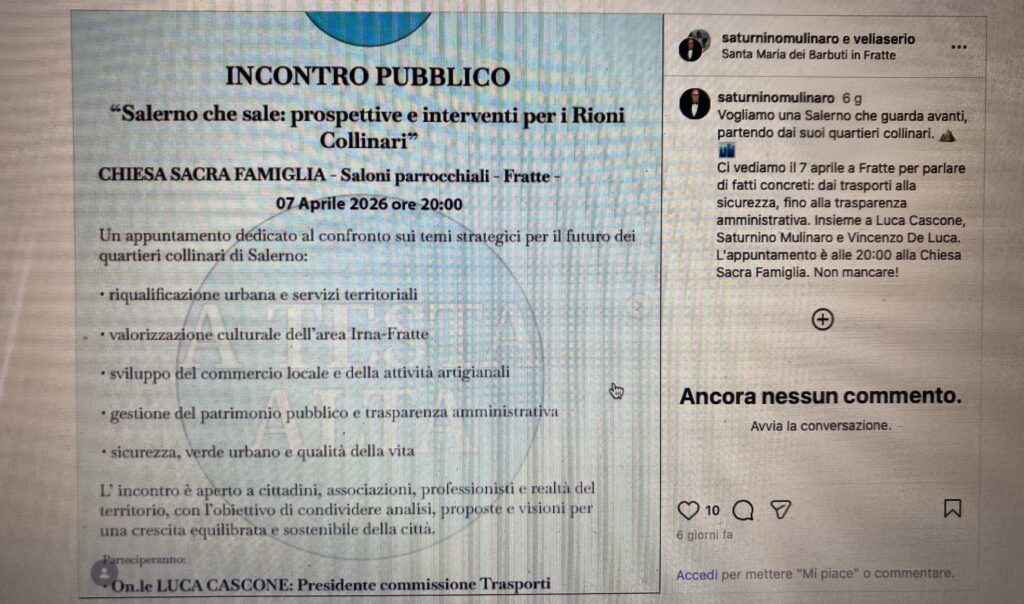 Ecco che allora Lorenzo Forte si inalbera e chiede all’arcivescovo di Salerno, Andrea Bellandi, di non consentire che i saloni della Chiesa vengano utilizzati per fare incontri elettorali. «La parrocchia non è un luogo per campagne elettorali», dichiara Forte. «Chiediamo con fermezza che la Chiesa rimanga uno spazio di comunità e spiritualità, libero da logiche politiche – chiosa -. I cittadini non meritano che i luoghi di fede diventino passerelle per nuovi volti di un vecchio potere che governa la città da oltre trent’anni».