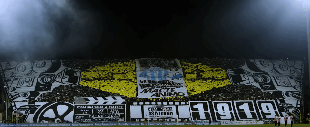 Al termine della serata, i gruppi della Curva Sud Siberiano hanno poi voluto salutare il pubblico presente con un momento finale assolutamente da brividi come solo gli Ultras Salerno sanno fare.